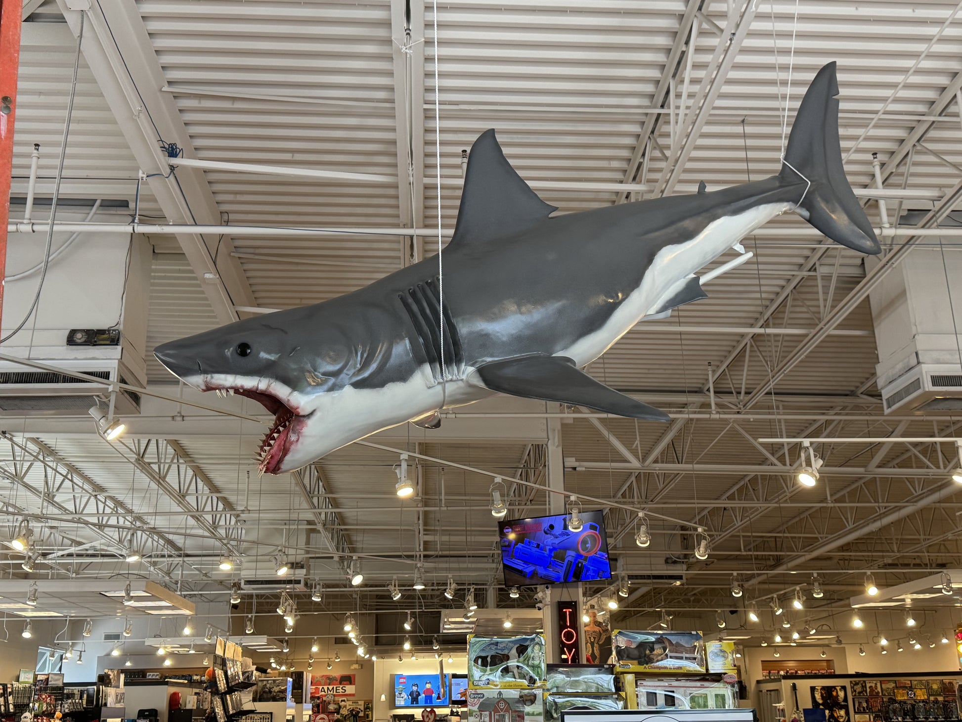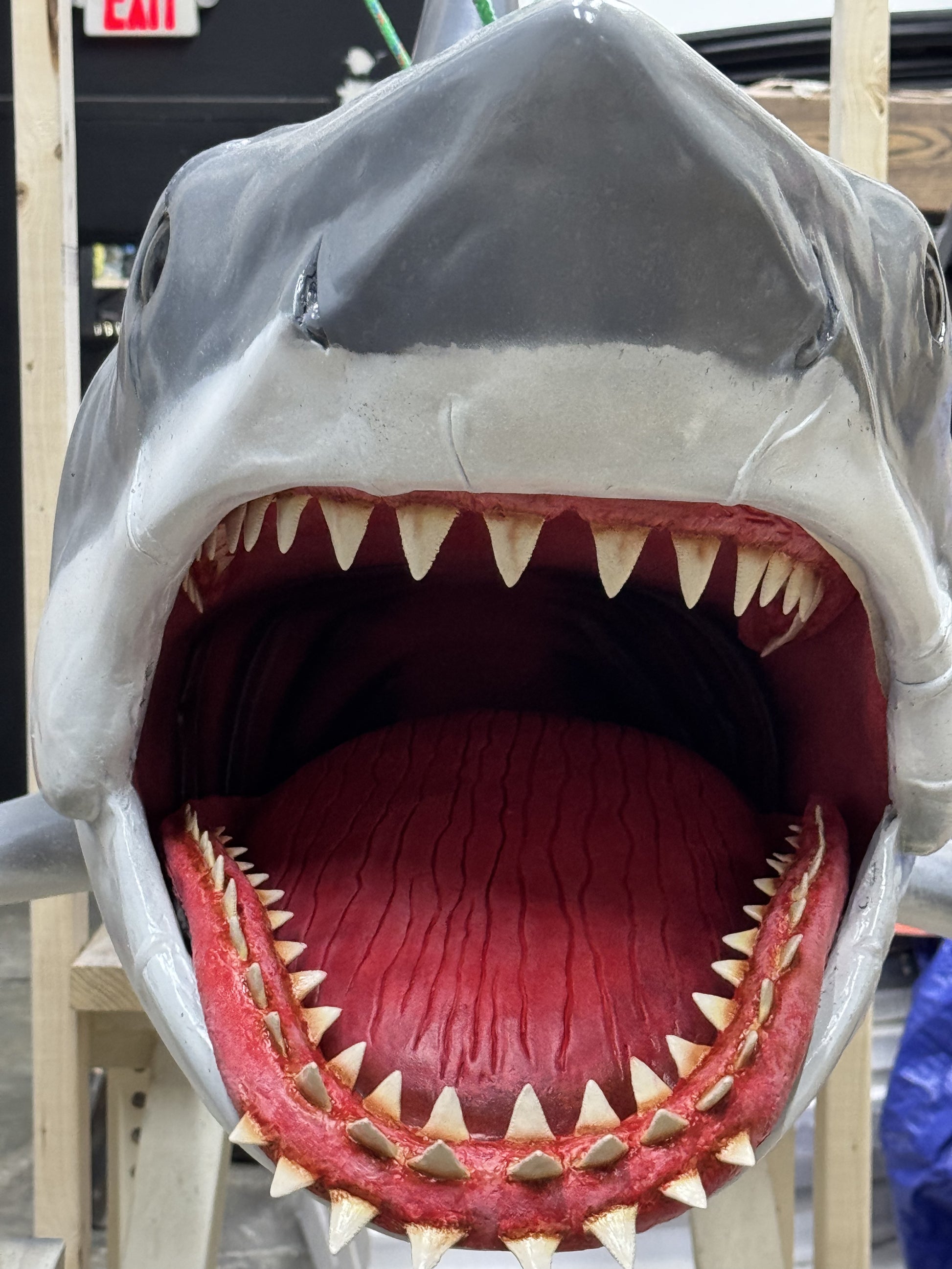 Weather-resistant and rugged, Bruce is ready for display almost anywhere—indoors or outdoors. While continuous direct sunlight is not recommended, this shark is built strong. It’s not going to melt.
